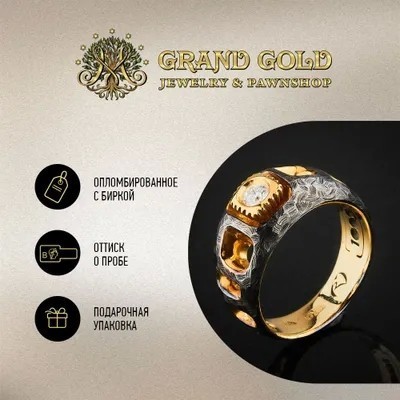 первая страница > Ювелирные изделия > GRAND GOLD Кольцо в стиле Ringo коллекции One Million с чернением и бриллиантами Золото 585 Размер 1